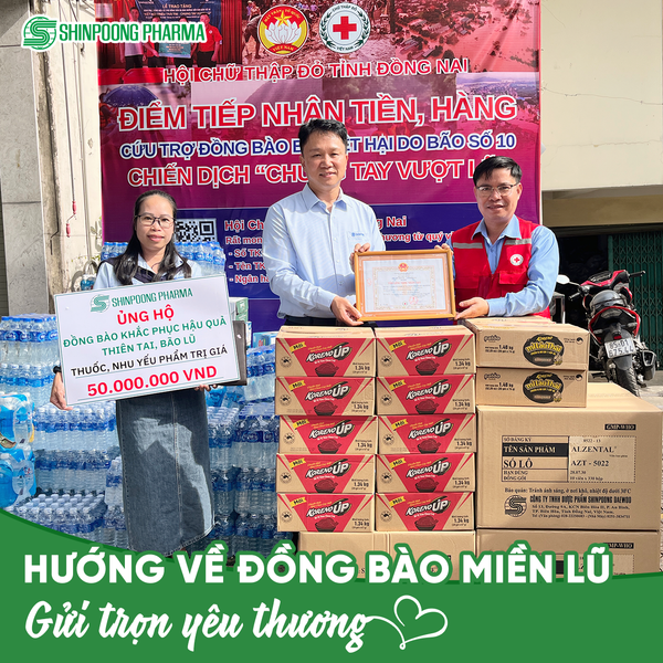 Shinpoong Pharma xin gửi lời thăm hỏi và động viên chân thành đến bà con vùng bị ảnh hưởng bởi bão lũ, mong bà con sớm vượt qua khó khăn, ổn định cuộc sống và tái thiết sinh kế.